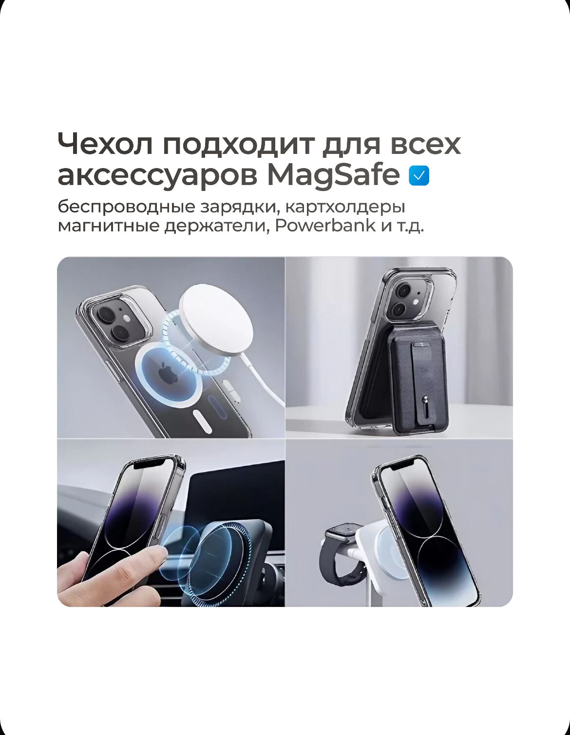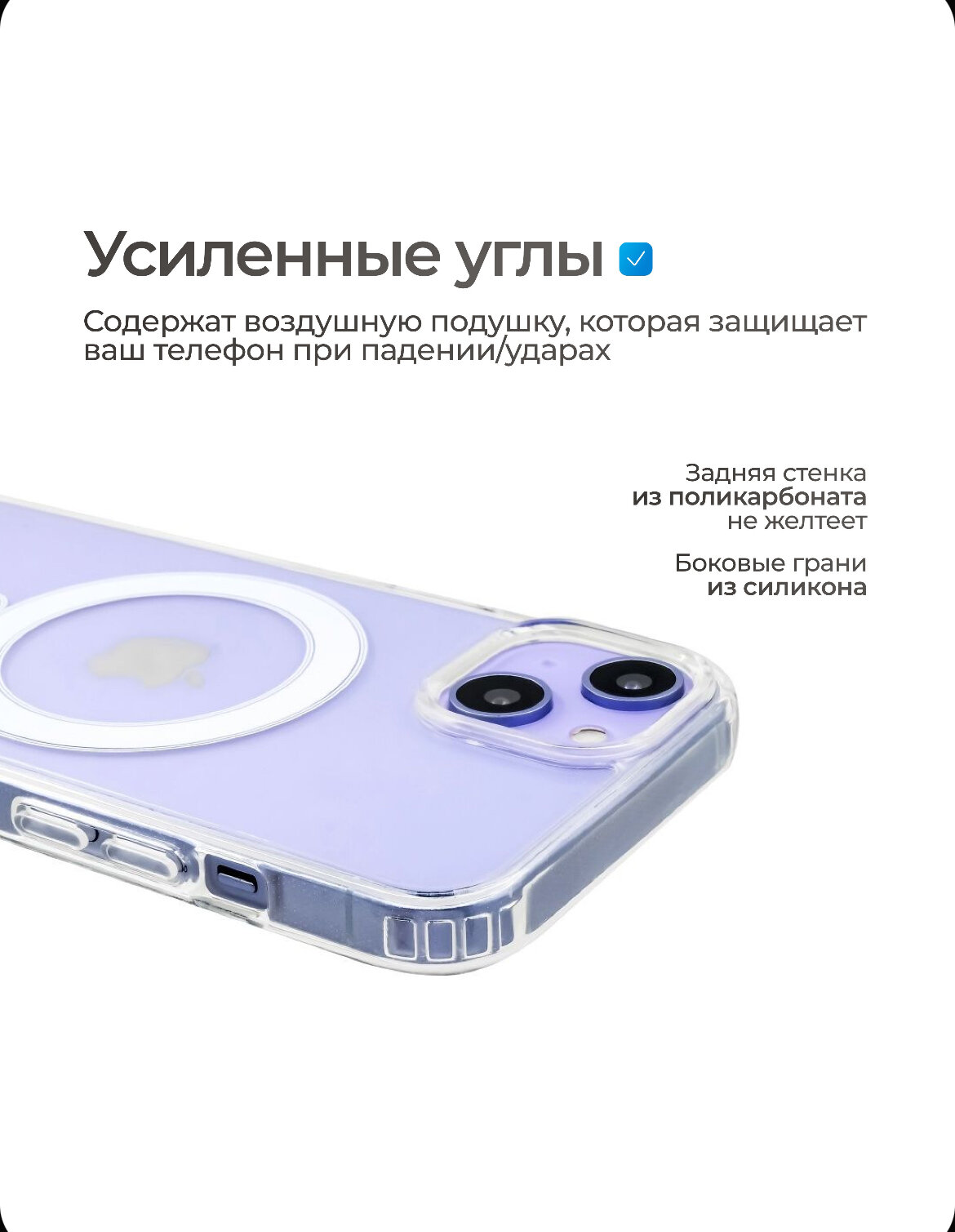 Прозрачный чехол для iPhone 14 с магнитом для беспроводной зарядки MagSafe/ противоударный с защитой камеры