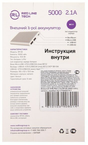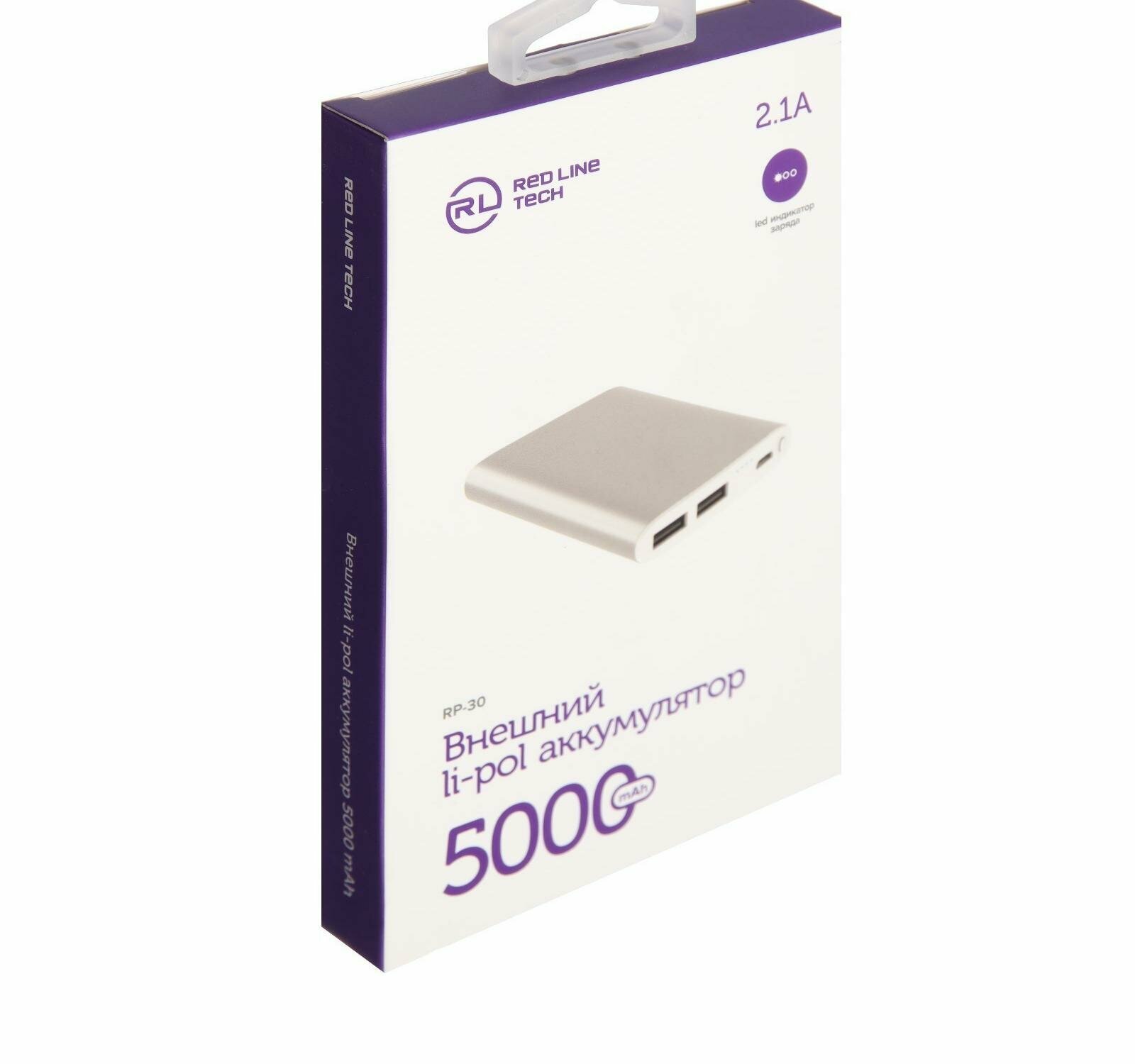 Внешний аккумулятор Red Line Rp-30, 5000 мАч, серебристый Red Line 9828653 .
