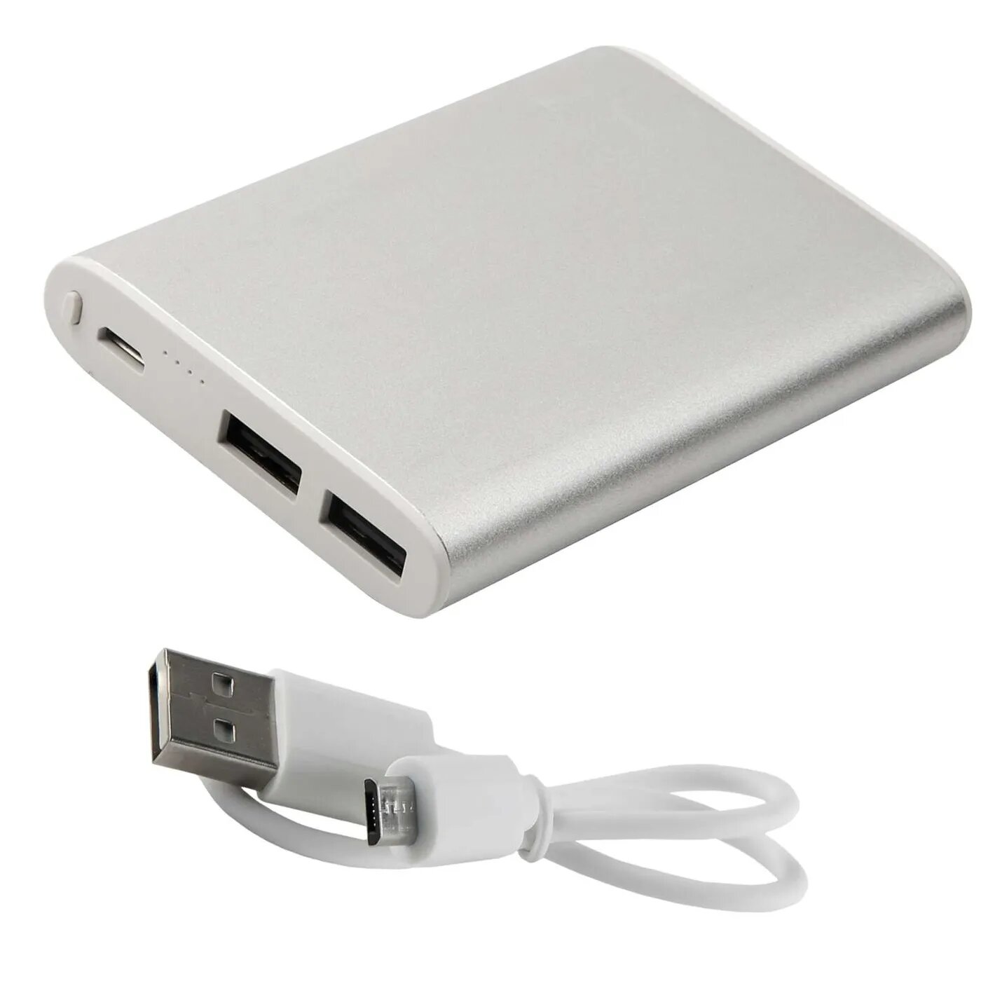 Внешний АКБ/Power bank 5000mAh/Внешний аккумулятор портативный/Повер банк компактный/Интерфейс USB/Переносной аккумулятор для зарядки телефона металл, серебро