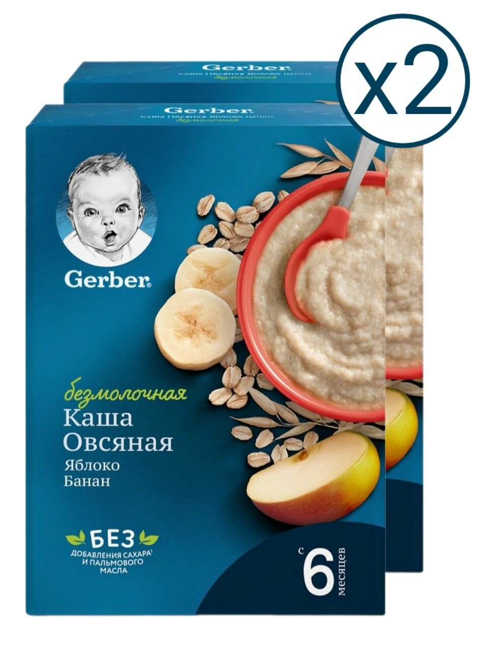 Каша сухая безмолочная Gerber овсяная банан-яблоко 180г 2 коробочки