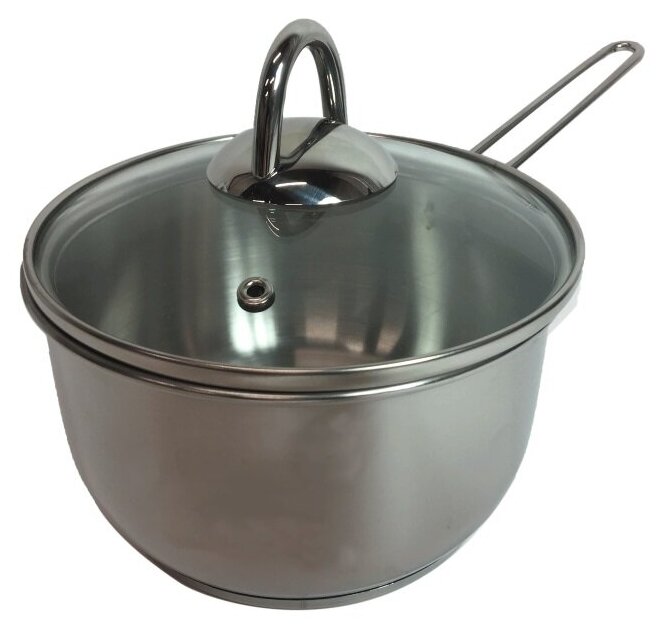 Кастрюля из нержавеющей стали Амет Классика-Прима с крышкой и длинной ручкой 1.5л / посуда для газовых и электрических плит
