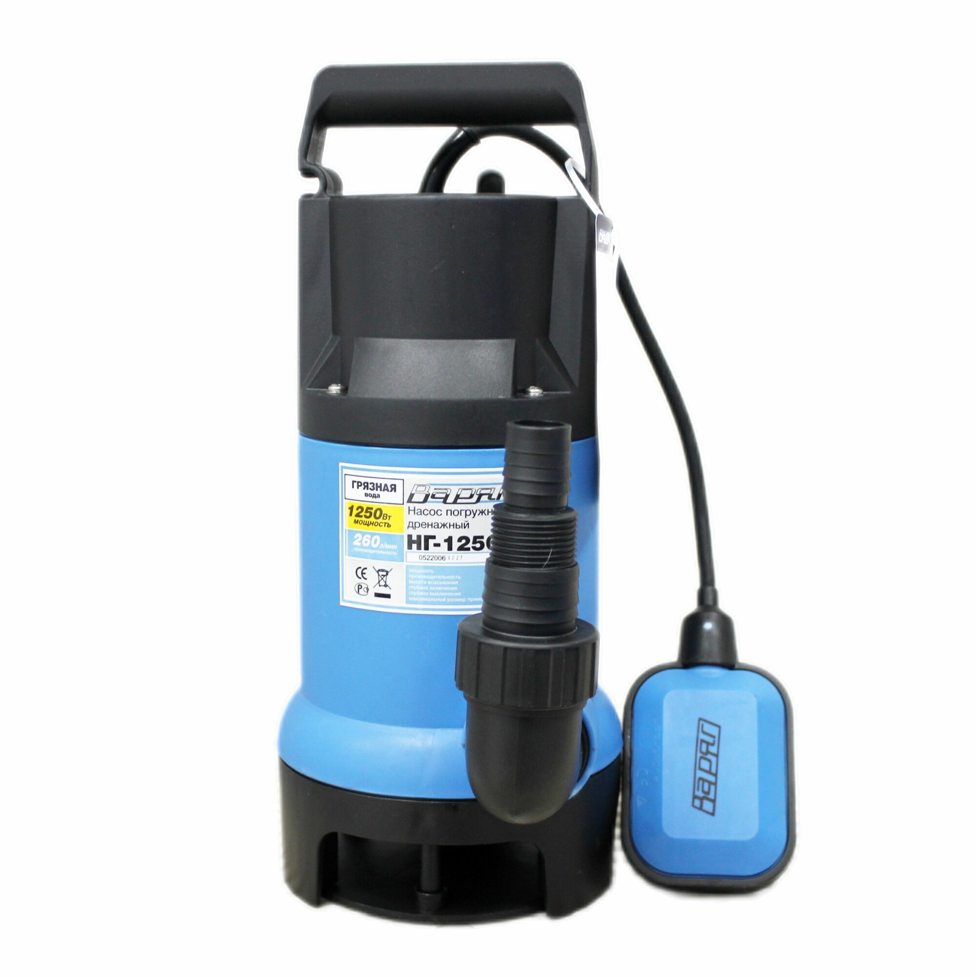 Дренажный погружной насос для грязной воды варяг НГ-1250Н/ насос для воды погружной с поплавковым выключателем, 1250 Вт, 260 л/