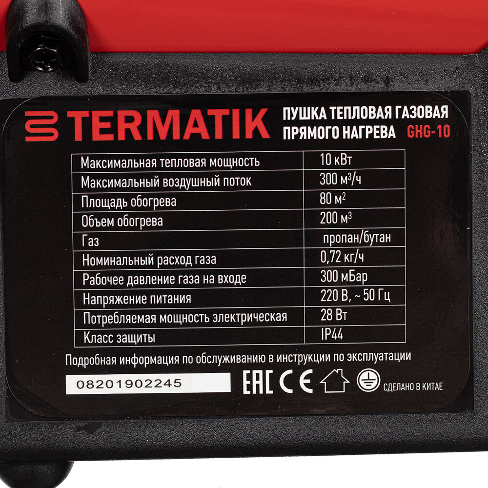 Ниже Вы можете прочитать отзывы на Пушка тепловая газовая 10 кВт Termatik GHG-10 прямого нагрева, ознакомится с подробными характеристиками, посмотреть интересные обзоры и фотографии на Пушка тепловая газовая 10 кВт Termatik GHG-10 прямого нагрева.