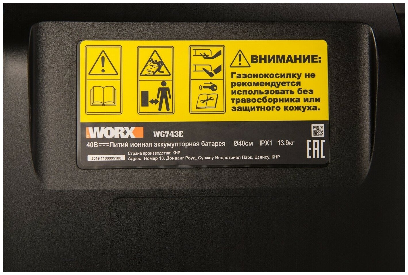Газонокосилка аккумуляторная Worx WG743E, 40 см, 40 В, АКБ 2 x 4 А*ч, двойное ЗУ 2 x 2 A, коробка