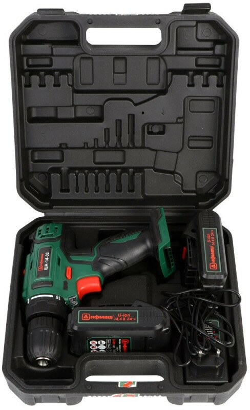 Аккумуляторная дрель-шуруповерт дифмаш ША-14-02/ 1250 об/мин, 2Ач. кейс