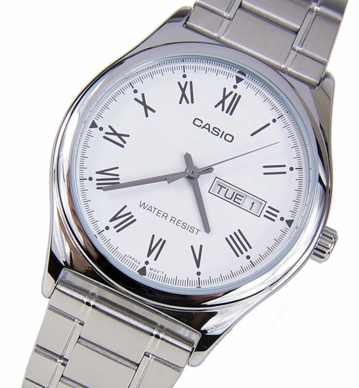 MTP-V006L-7B Casio наручные часы кварцевые WR30 (3 атм) мужские хром, черный отображение числа, отображение дня недели минеральное стекло