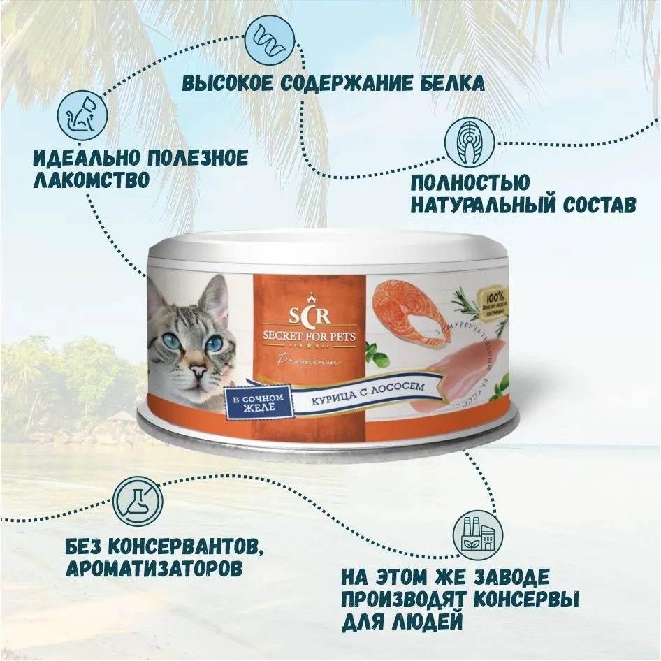 Консервы для кошек Secret Premium курица с лососем в желе 85 г x 24 шт интересное: