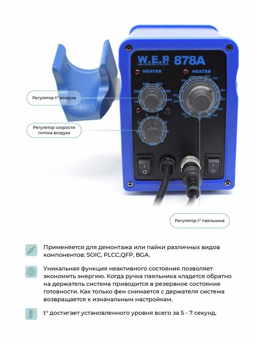 Паяльная станция W.E.P 878A 700 Вт, керамика, турбинный фен