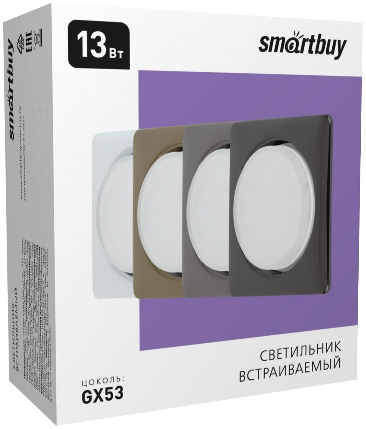 Светильник встраиваемый Smartbuy 1х13 Вт GX53 белый квадрат интересное: