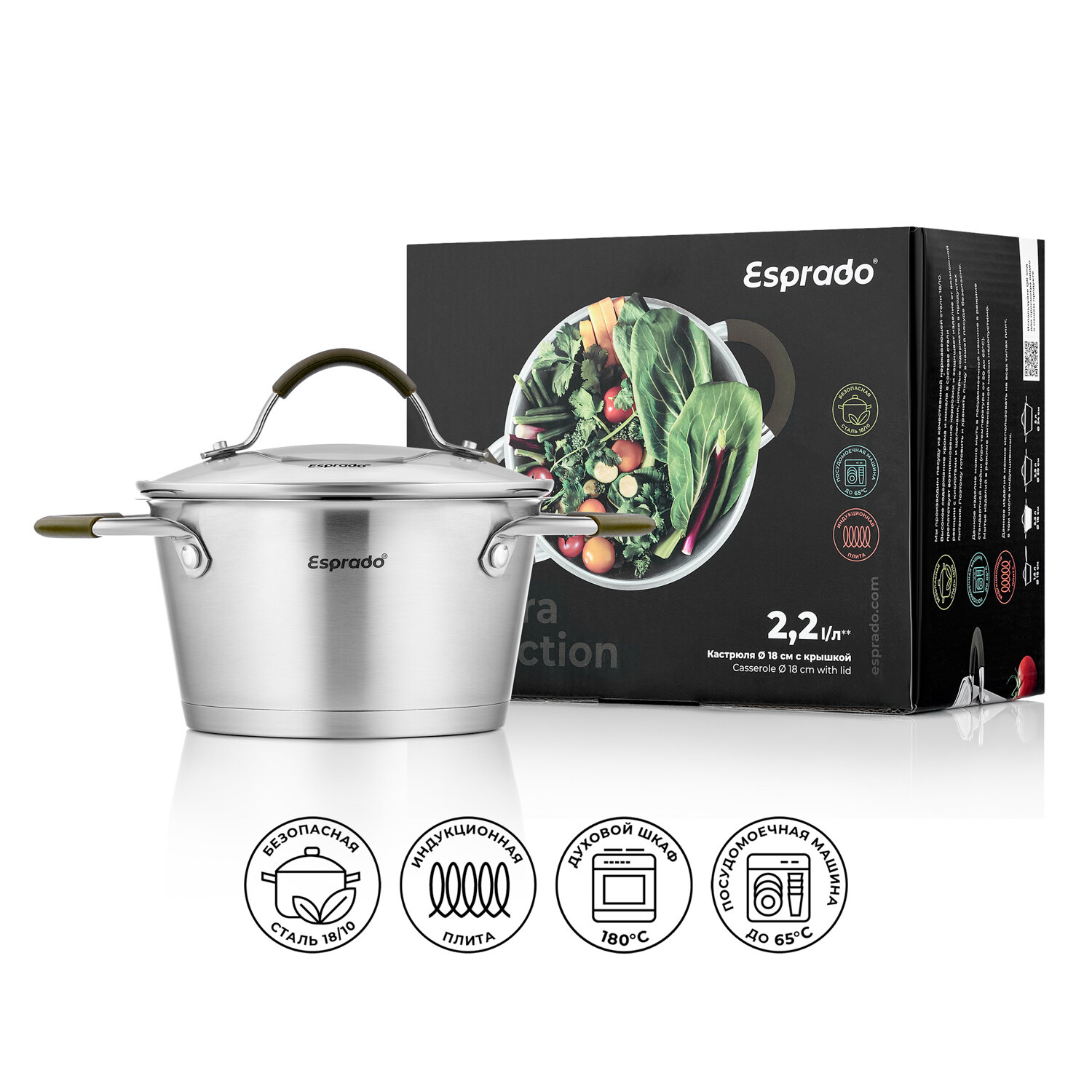 кастрюля ESPRADO Olivera 5л 24см нерж.сталь стекл.крышка индукция