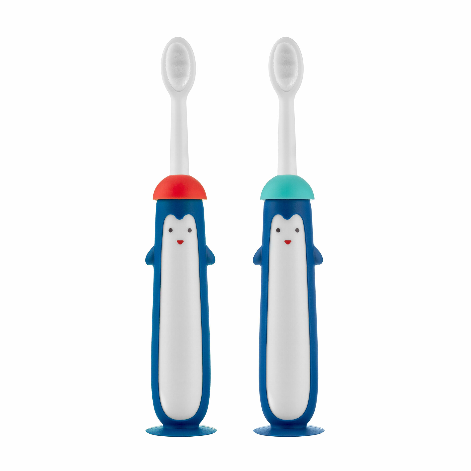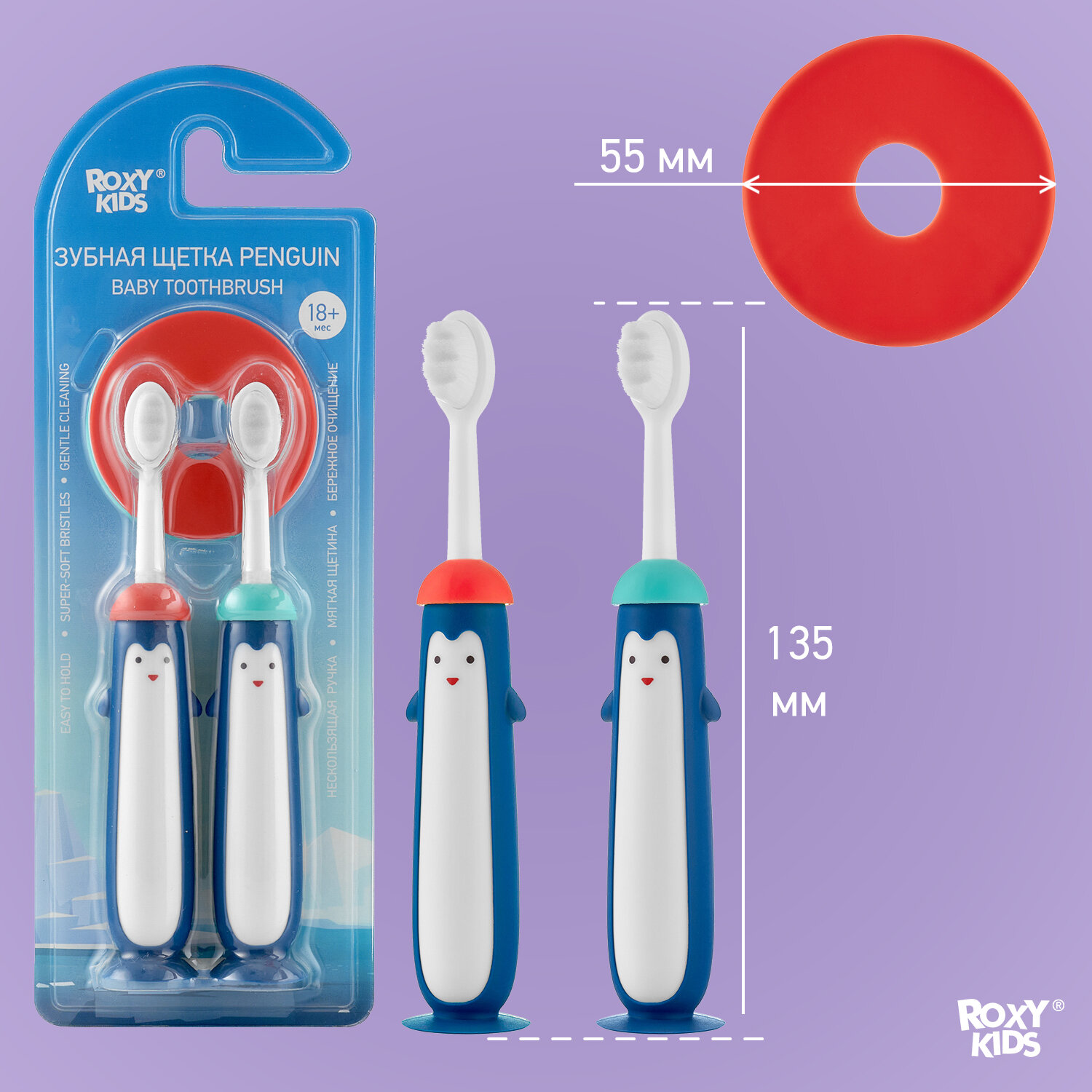 Купить Детская зубная щетка "Пингвин" от ROXY KIDS, монопучковая, ультрамягкая, на присоске, 2шт, цвет красный + голубой