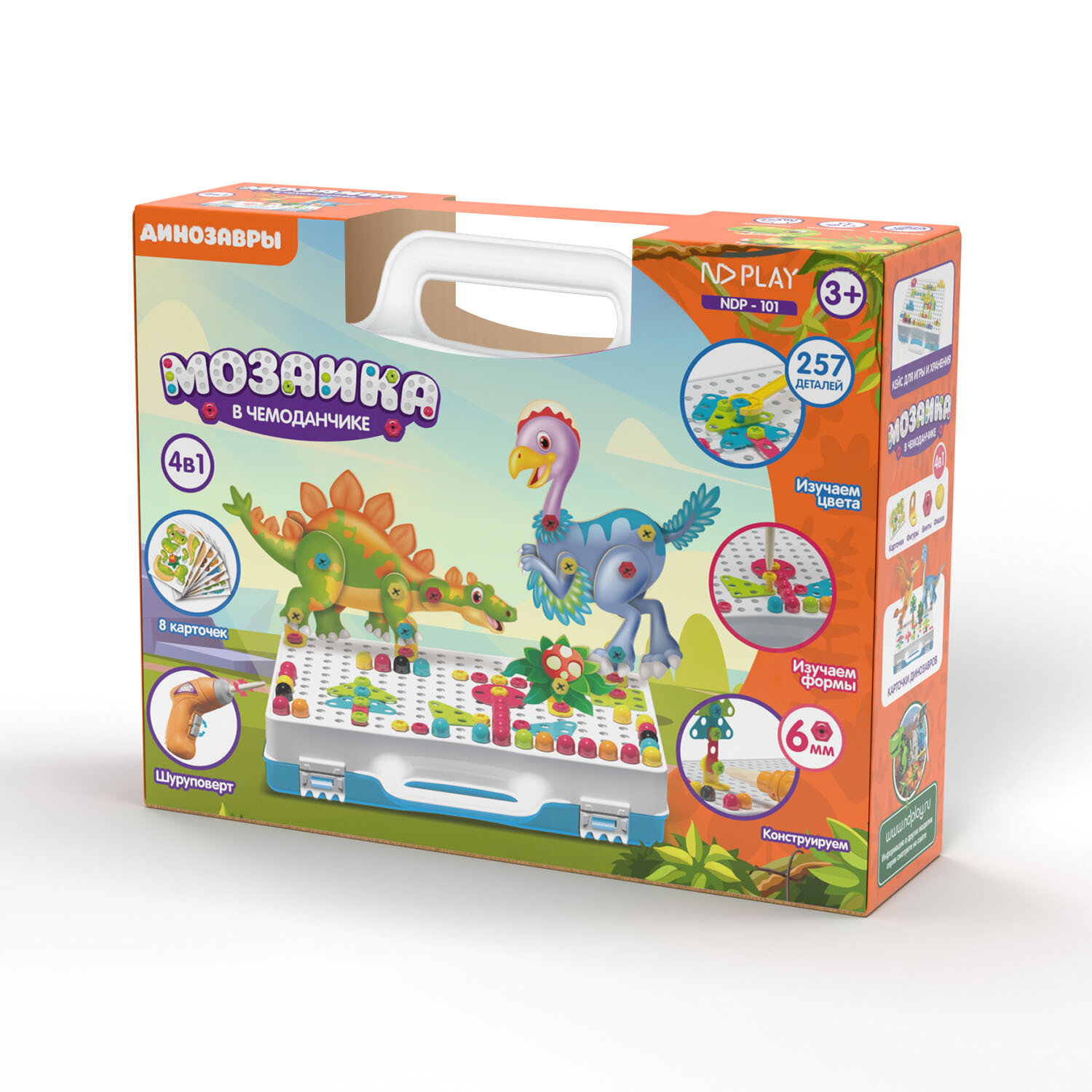 Ниже Вы можете прочитать отзывы на Конструктор ND Play "Мозаика в чемоданчике" 4 в 1, Динозавры (NDP-101), ознакомится с подробными характеристиками, посмотреть интересные обзоры и фотографии на Конструктор ND Play "Мозаика в чемоданчике" 4 в 1, Динозавры (NDP-101).