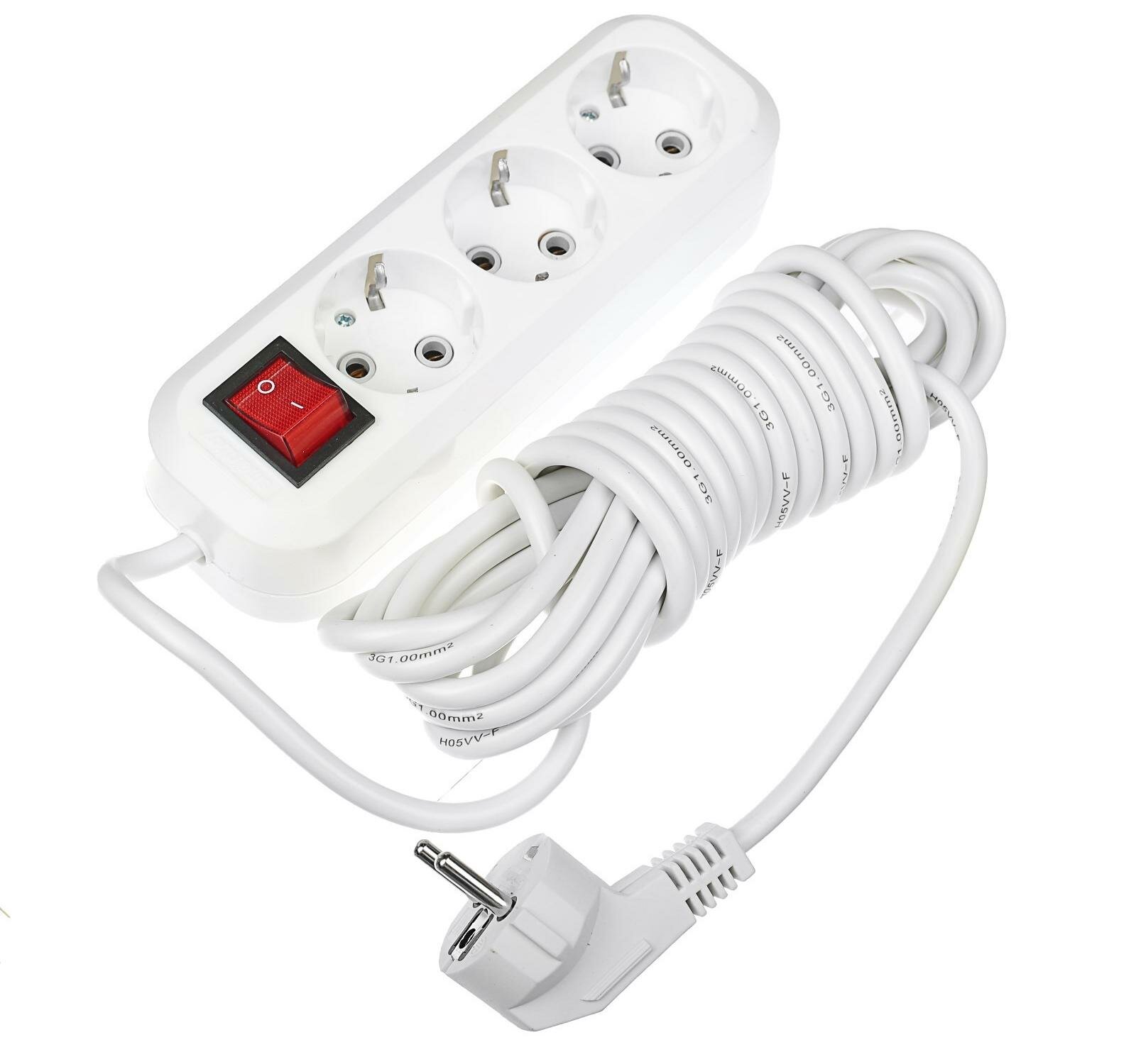 Удлинитель SMARTBUY SBE-16-3-05-ZS 16А/3,5кВт, ПВС 3х1.0, 3 розетки, 5,0м, белый