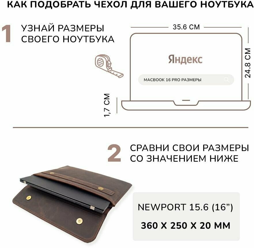 Кожаный Чехол - папка by J.Audmorr для MacBook Pro 16 / Ноутбука 15,6"-16,0", кожа - Crazy Horse, шоколадный, NewPort 15.6 Pine