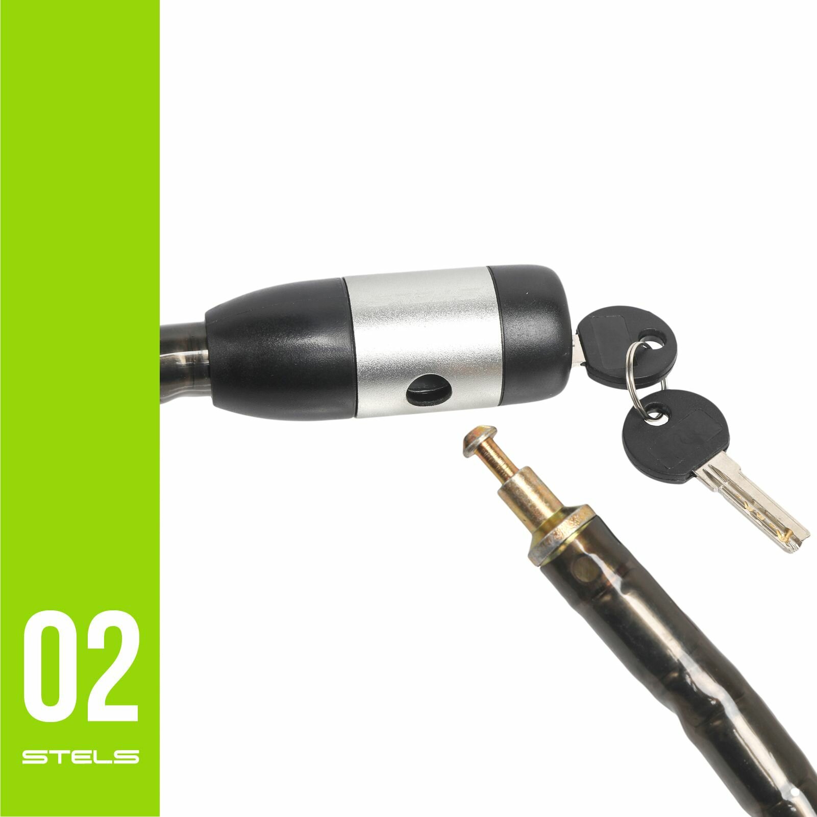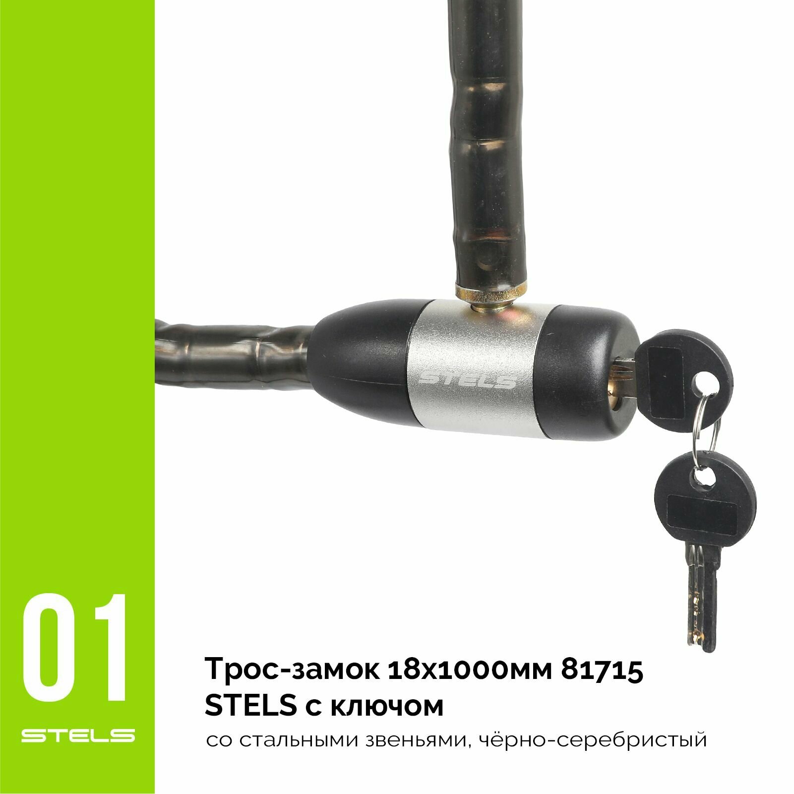STELS Трос-замок 81715 с ключом со стальн. звеньями 18x1000мм чёрно-серебр. 540049