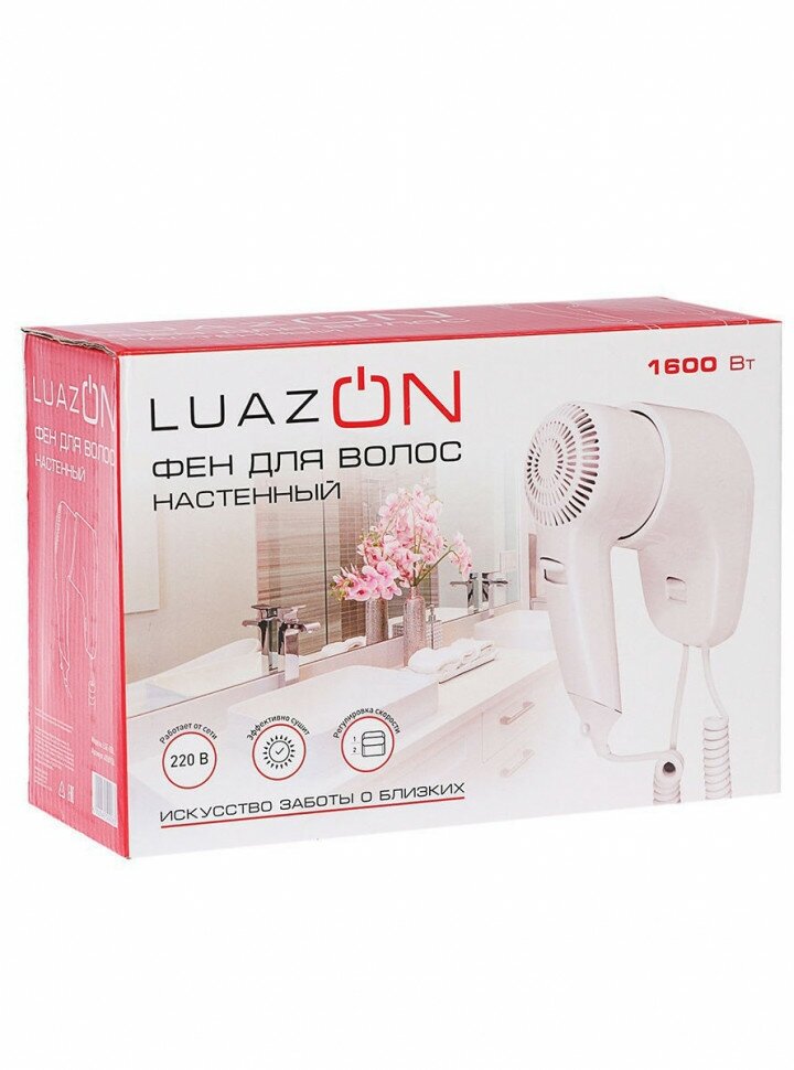 Luazon Home Фен Luazon LGE-006, 1600 Вт, настенный, 2 скорости, крепление, белый