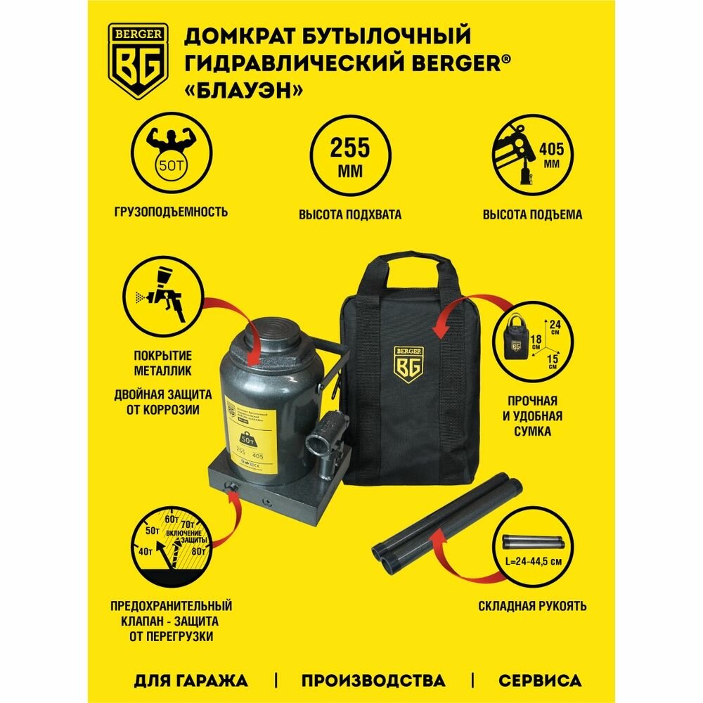 Домкрат бутылочный гидравлический BERGER ''Блауэн'' 255-405 мм, 50 т BG1304 интересное: