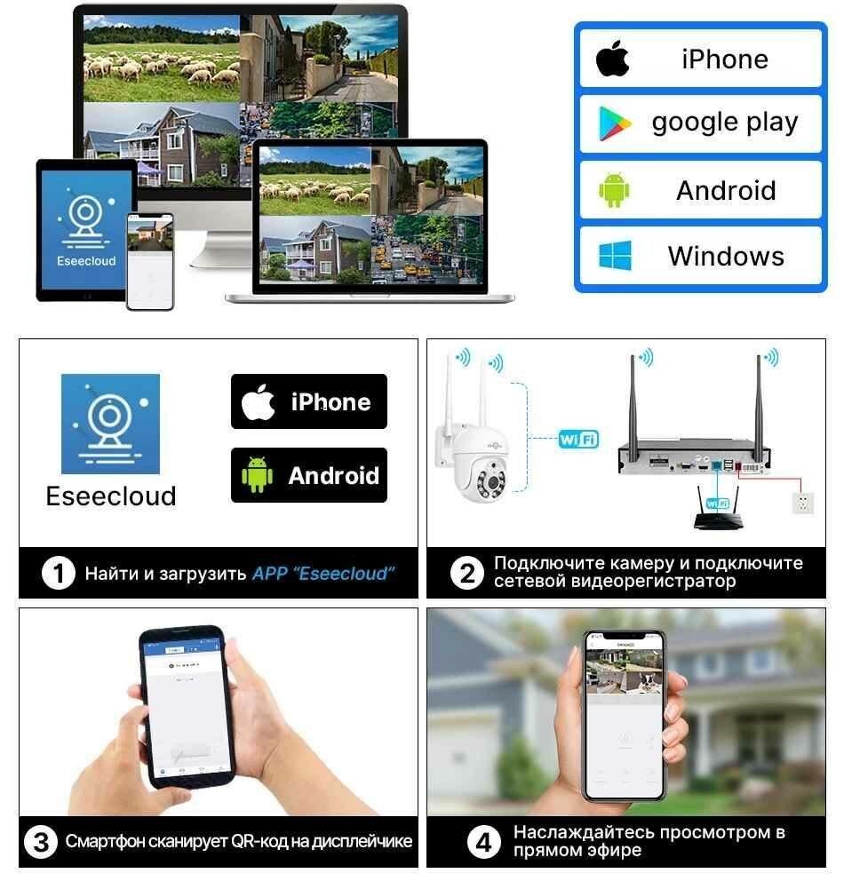 Комплект камер уличного видеонаблюдения 8-канального (беспроводной) Wi-Fi, NVR Kit, 3MP, 4 IP камеры с блоком питания, без жесткого диска (У) интересное: