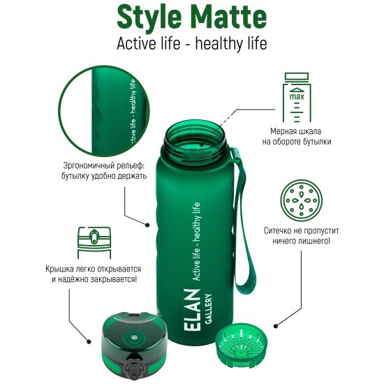 Ниже Вы можете прочитать отзывы на Бутылка для воды Elan Gallery Style Matte, с углублениями для пальцев, темно-зеленая, 1000 мл, ознакомится с подробными характеристиками, посмотреть интересные обзоры и фотографии на Бутылка для воды Elan Gallery Style Matte, с углублениями для пальцев, темно-зеленая, 1000 мл.