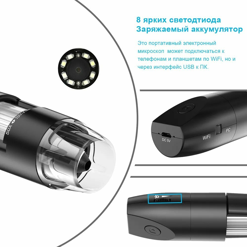 IC-V316 iCartool Микроскоп Wifi, 2Мп, 1000X, 1920x1080,2MП IC-V316 . интересное: