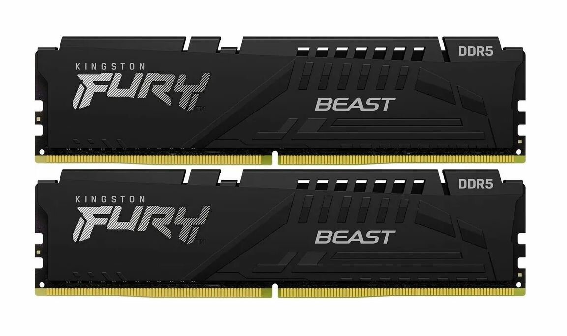 Оперативная память 16Gb Kingston FURY Beast Black CL40 (KF552C40BBK2-16) DDR5, DIMM, PC41600, 5200Mhz, CL40 (Kit of 2) (retail)