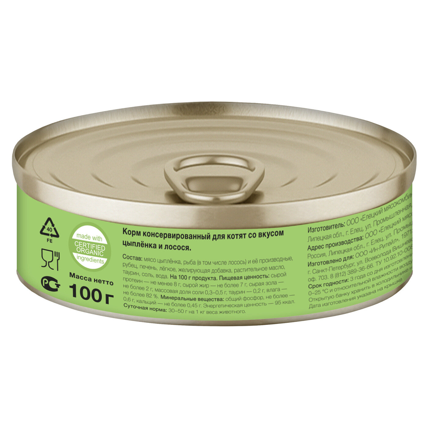 Корм Organix (консерв.) для котят, с цыплёнком и лососем, 100 г x 24 шт