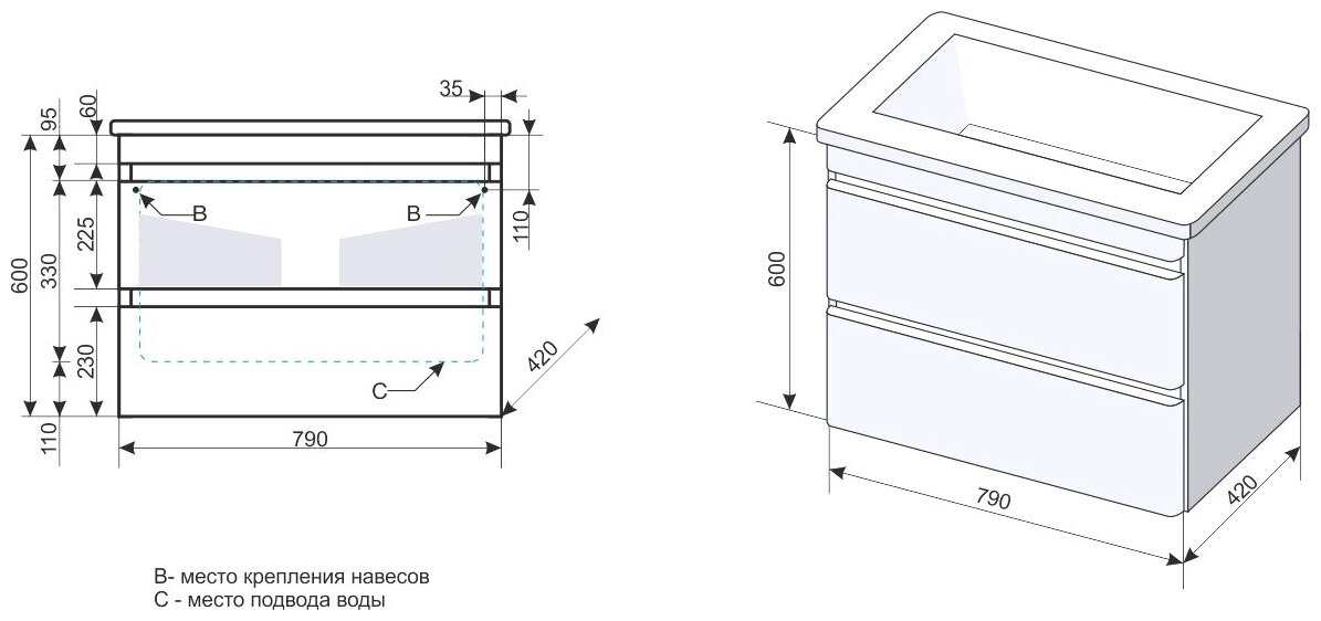 тумба с раковиной Style line Тумба с раковиной Style Line Даймонд 80 Люкс Plus подвесная, белая интересное: