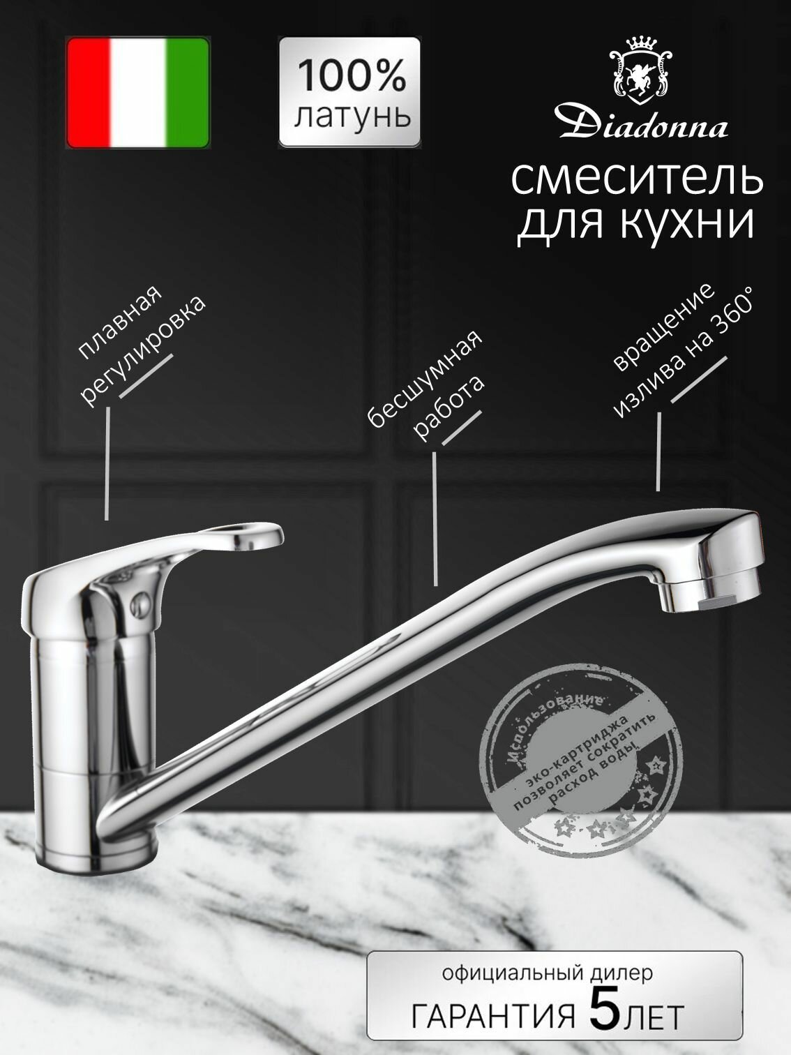 Смеситель Diadonna для кухни с длинным изливом D80-449111 хром интересное: