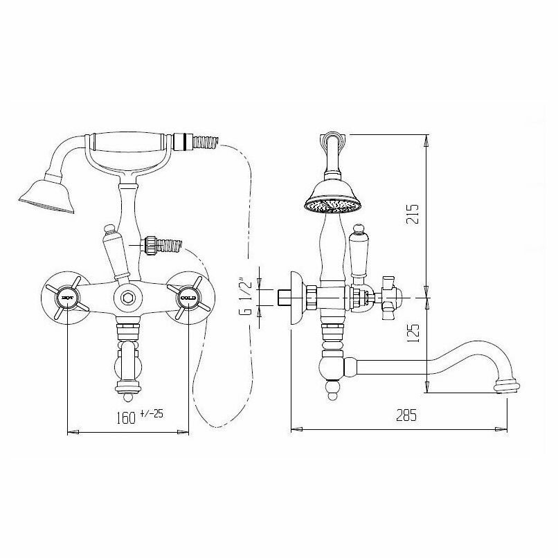 Смеситель Cezares Nostalgia NOSTALGIA-VDP2-01-Bi для ванны с душем