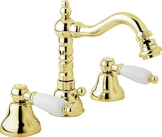 Смеситель для биде с донным клапаном золото 24 карат, ручки белые Cezares First FIRST-BBS2-03/24-Bi