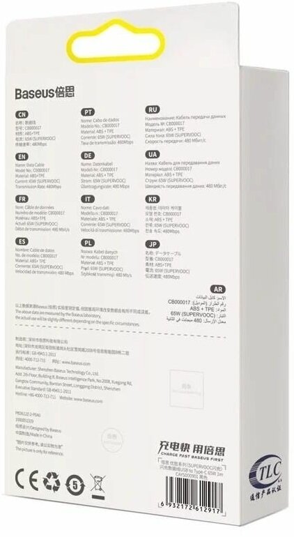 Кабель для USB BASEUS Superior Series (SUPERVOOC) Fast Charging, USB - Type-C, 65W, 2 м, черный интересное: