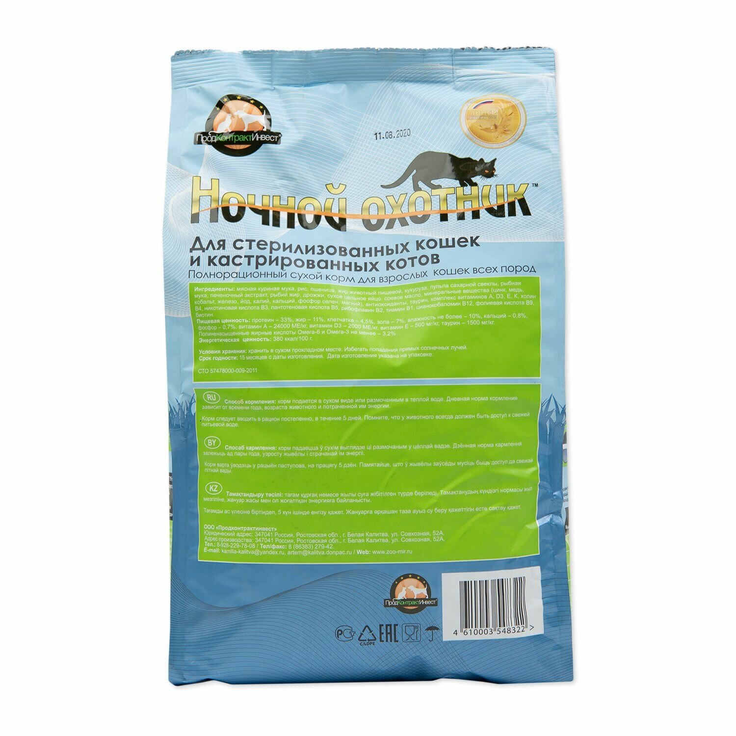 Ночной охотник Сухой корм "Ночной охотник" для стерилизованных кошек и кастрированных котов, 400 г