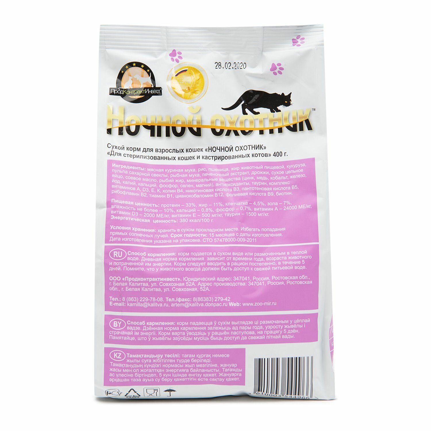 Ночной охотник Сухой корм "Ночной охотник" для стерилизованных кошек и кастрированных котов, 400 г