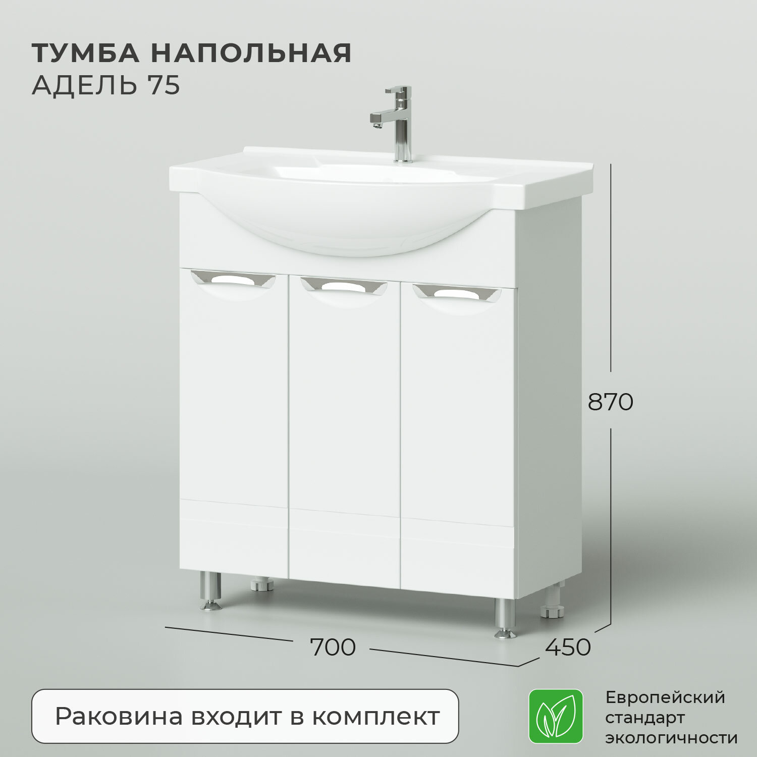 СохранитьТумба с раковиной в ванную / Тумба для ванной / Раковина с тумбой для ванной IKA Адель 75 760х450х870 Белый глянец напольная интересное: