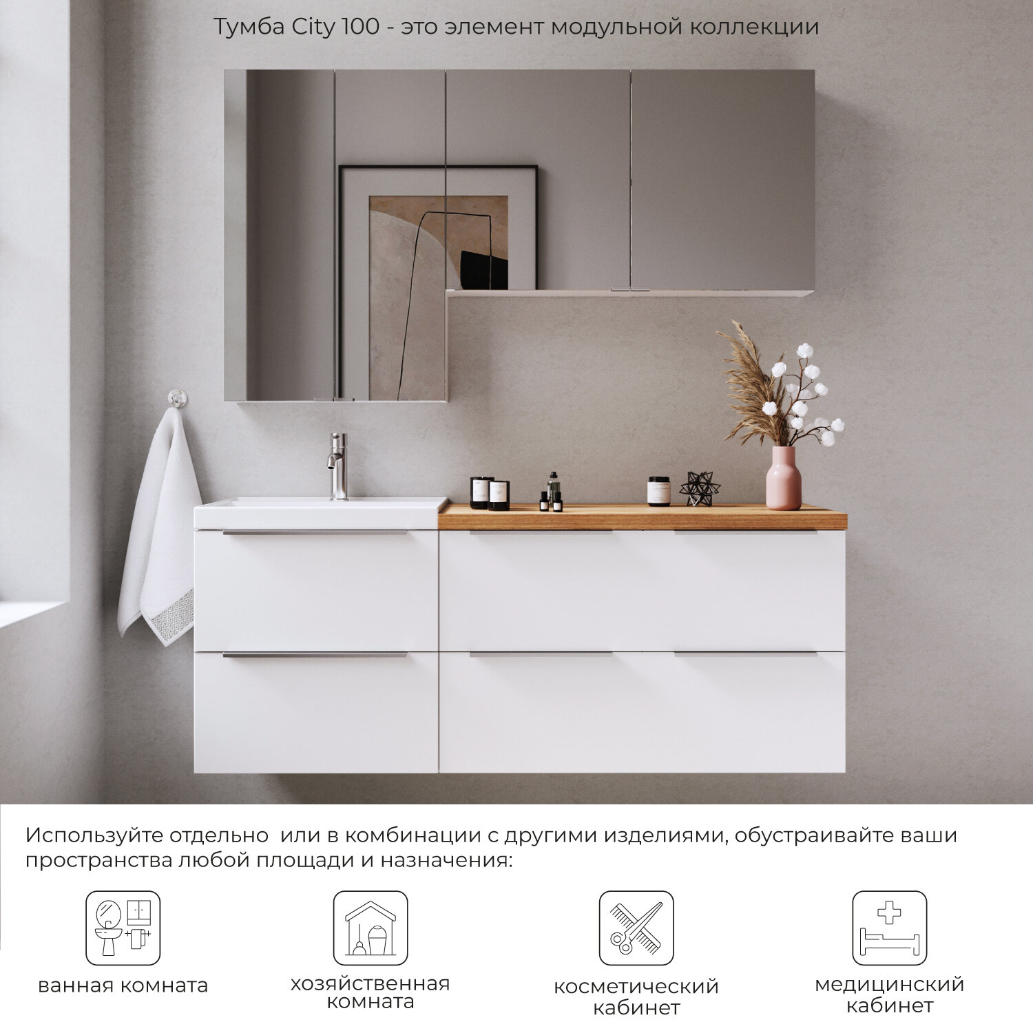 Tумба под раковину в ванную / Тумба для ванной Итана City 100 1001х448х600 подвесная интересное: