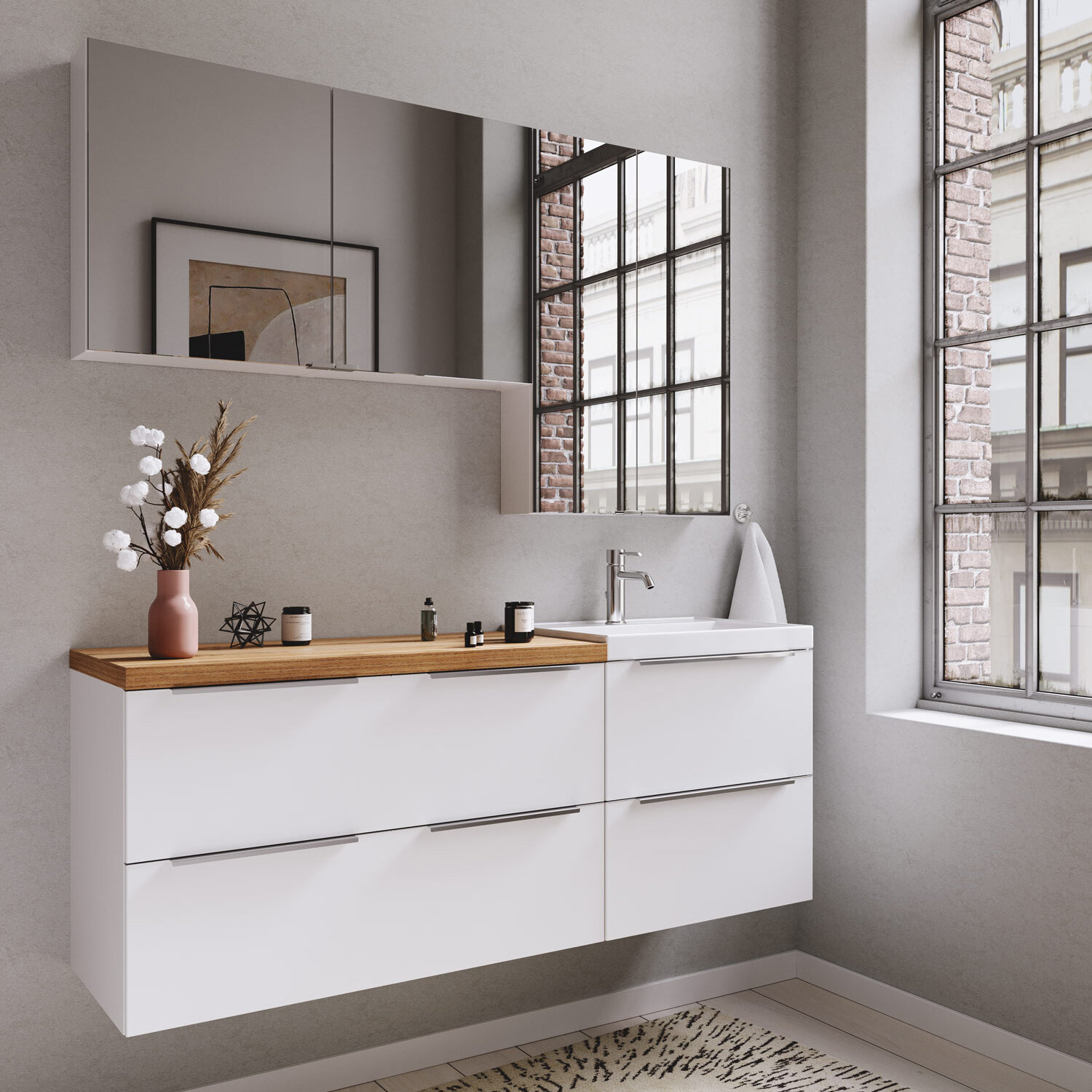 | Плюсы: | очень классная тумба! подвесили, положили на нее деревянную столешницу, поставили чаши - выглядит просто супер! Места внутри достаточно, ящики ходят плавно, всё отлично |