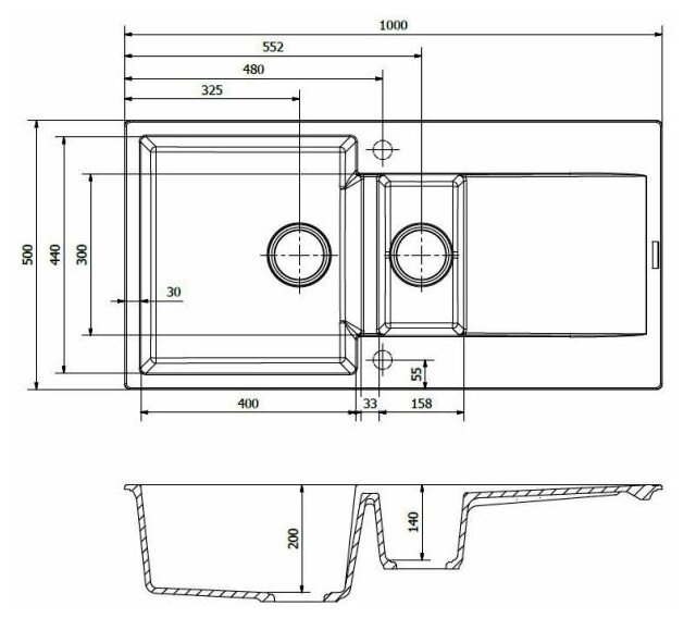 | Особенности | дополнительная чаша / отверстие под смеситель |