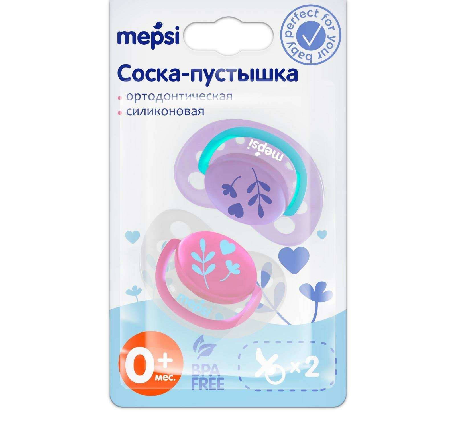Соска - пустышка силиконовая MEPSI ортодонтическая, 0+ мес., 2 шт.