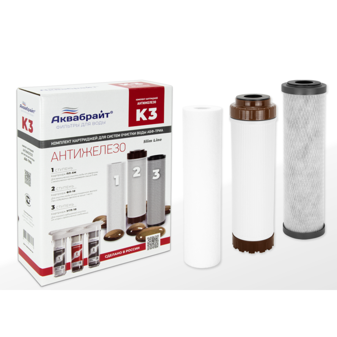 Комплект картриджей для воды с содержанием железа Аквабрайт К-3