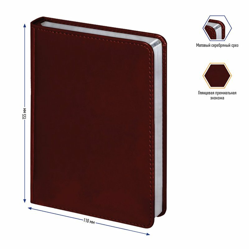Ежедневник недатированный А6, 160 листов, Berlingo "Silver Pristine". Блокнот/ планер/ записная книжка в линейку, под кожу, серебряный срез, коричневый, в подарок
