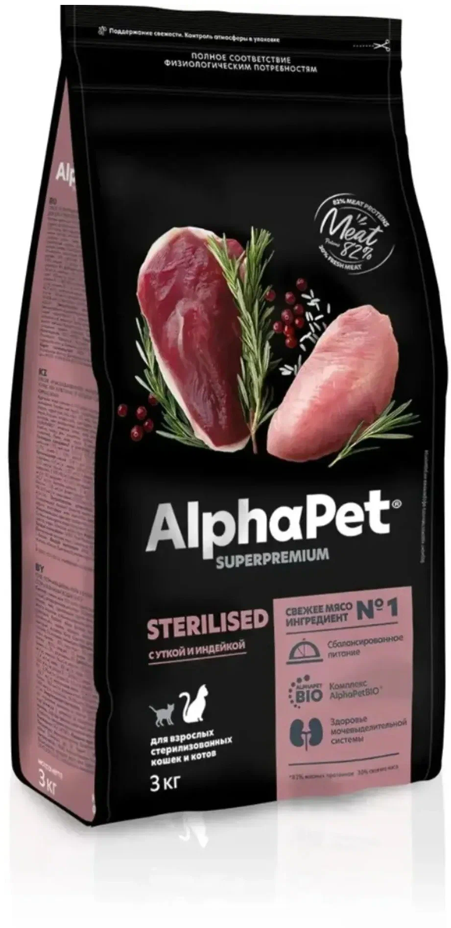 Купить AlphaPet Superpremium - Сухой корм для взрослых стерилизованных котов и кошек, с Уткой и Индейкой (3 кг)