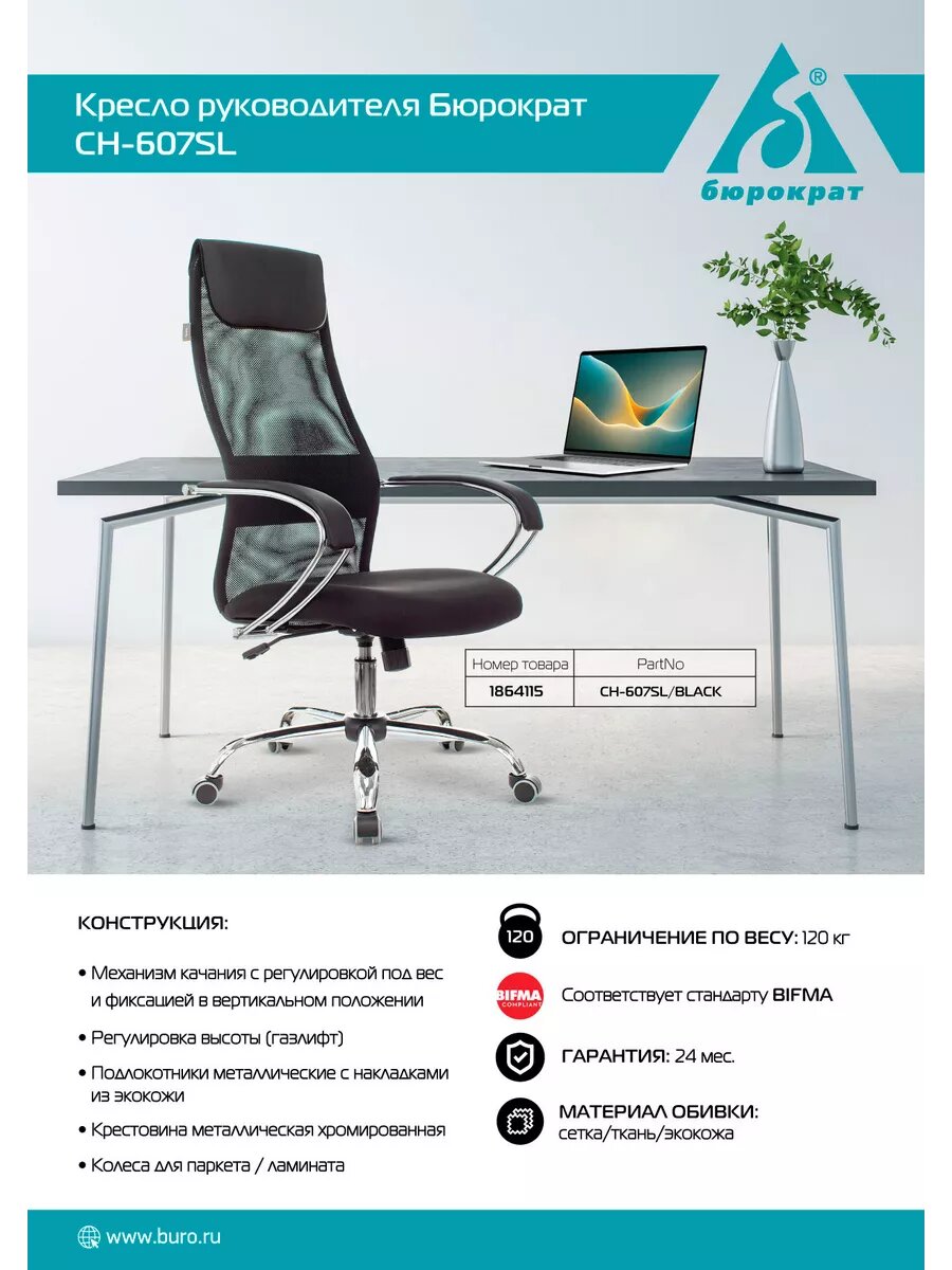 СохранитьКресло руководителя Бюрократ CH-607SL, на колесиках, сетка/ткань, черный [ch-607sl/black] интересное: