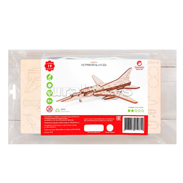 Деревянный конструктор Lemmo Истребитель ЛТ-22, 19 деталей