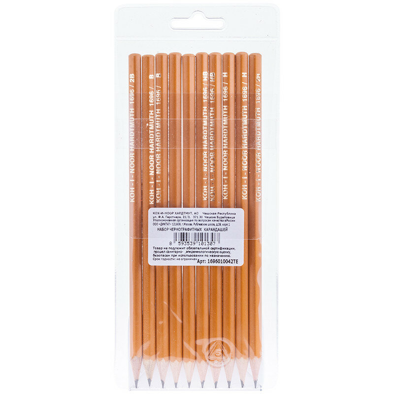 Набор карандашей ч/г Koh-I-Noor "1696" 10шт., 2H-2B, заточен., ПВХ уп., европодвес, 001126 интересное: