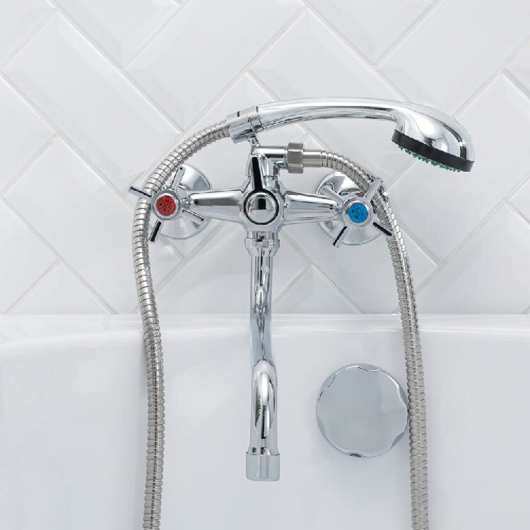 Смеситель для ванны, РМС, с кран-буксой, шлангом и лейкой, хром, SL118-140