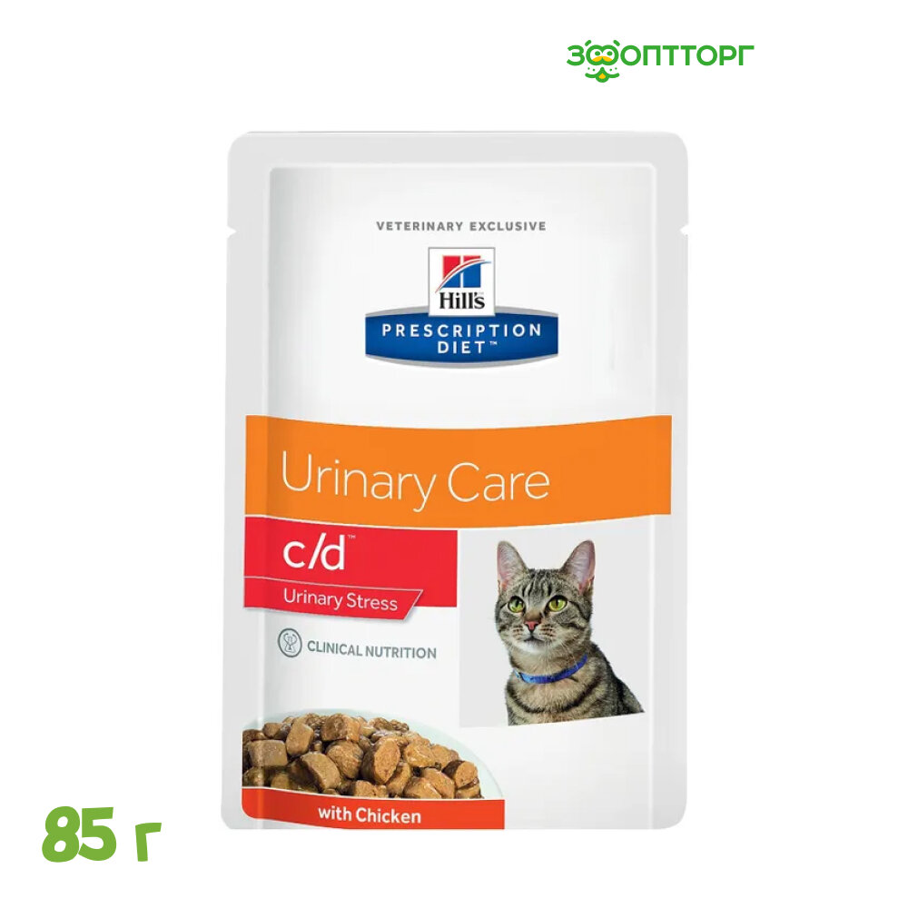 Hill's Prescription Diet c/d Urinary Stress пауч для кошек при МКБ Курица, 85 г.
