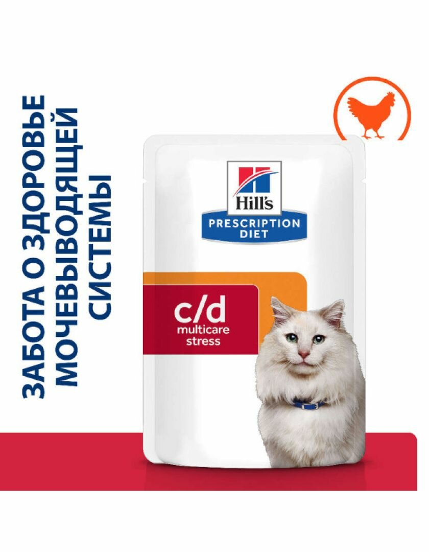 Влажный диетический корм для кошек Hill's Prescription Diet c/d Multicare Urinary Stress при профилактике цистита и мочекаменной болезни (мкб), в том числе вызванные стрессом, с курицей, 85гр * 12 шт