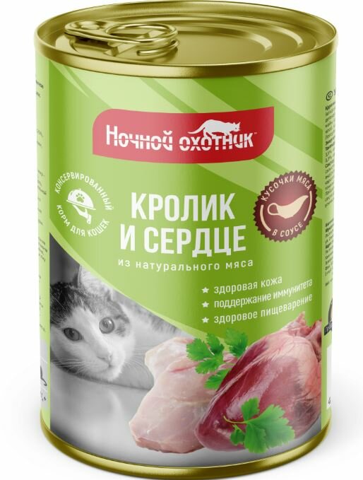 Купить Ночной охотник Консервы для кошек кролик и сердце в соусе, 415г 0.415 кг