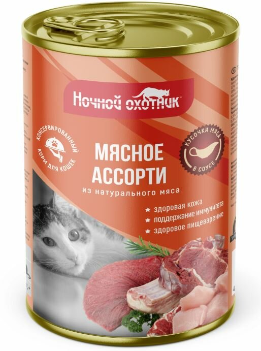 Купить Ночной охотник Консервы для кошек мясное ассорти в соусе, 415г 0.415 кг