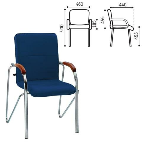 Кресло для приемных и переговорных "Samba", деревянные накладки, хромированный каркас, кожзам, синий